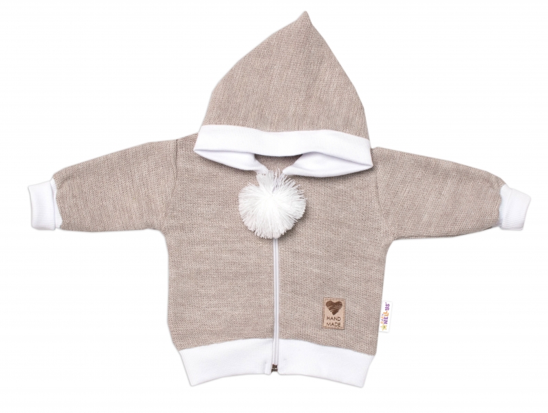 3-dílná souprava Hand made, pletený kabátek, kalhoty a botičky, béžová, vel.62