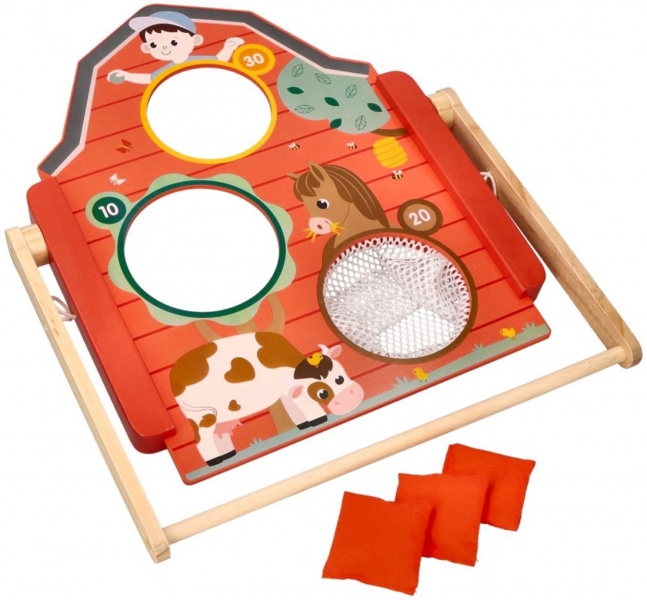 Pohybové a dovednostní hry jsou skvělým řešením, jak povzbudit děti k fyzické aktivitě. Tím, že děti povzbuzujeme ke hře a pohybu, vedeme k jejich zdravému rozvoji a práci na jejich motorice. Nespornou výhodou této hry je, že ji lze používat jak doma, tak venku. Dřevěné prkénko s motivem hospodářských zvířat děti jistě osloví a podpoří přesné hody.