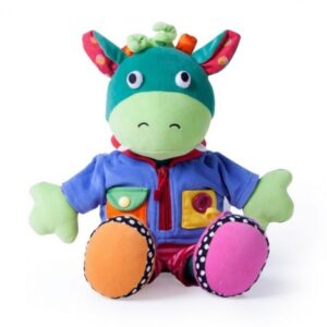 Všechny atrakce byly připraveny tak, aby zaujaly batole, povzbudily k objevování a procvičily manuální zručnost. Deska je dřevěná, na stabilní noze.