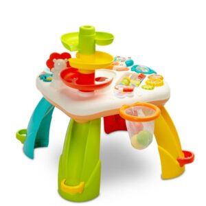 Tento produkt je vybaven sadou chrastítek, barevnými senzorickými hračkami a hudebním panelem ve tvaru tukana,