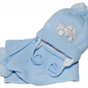 Zimní čepička s šálou – Autíčko sv. modré, 0-6m, Baby Nellys