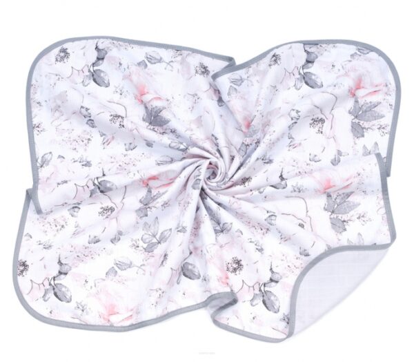 Mušelínová oboustranná deka/dečka Pivoňky, pastel/šedá