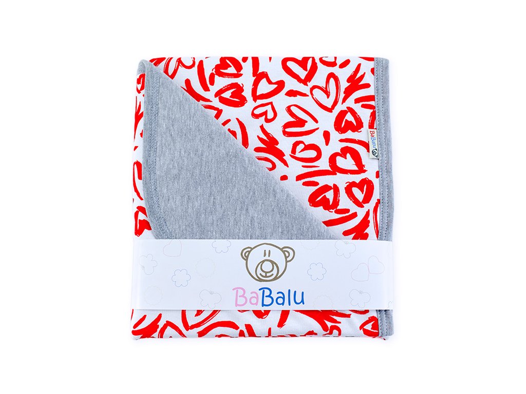 BaBalu Bavlněná oboustranná deka 80x90cm Srdíčko - šedá/červená