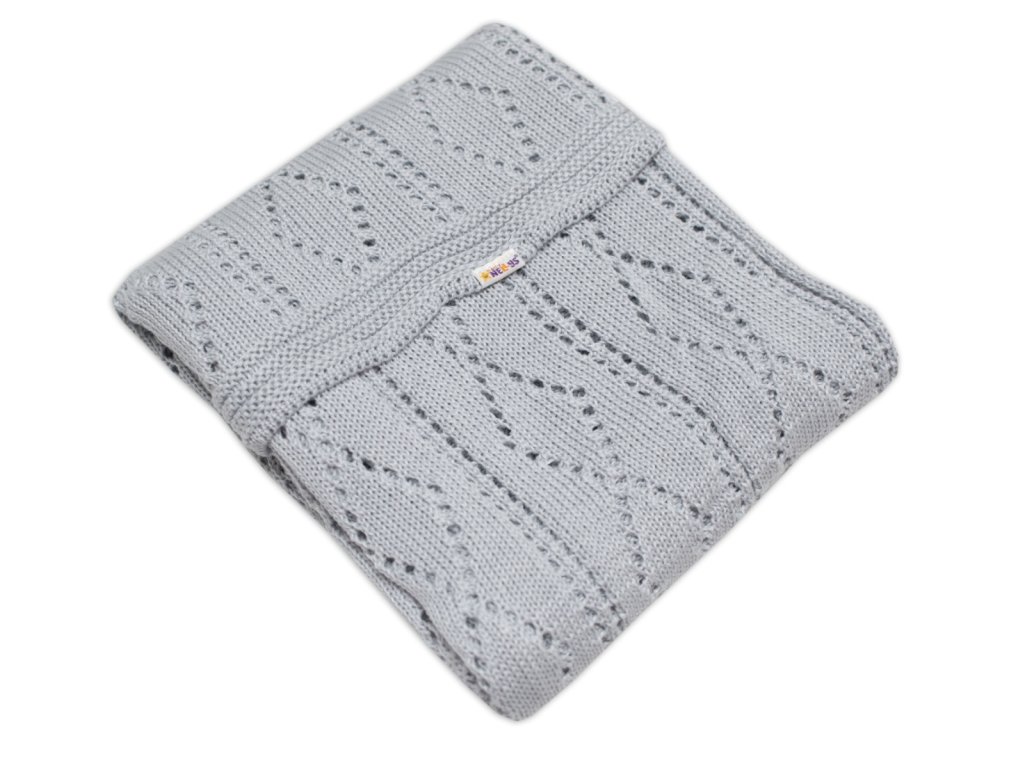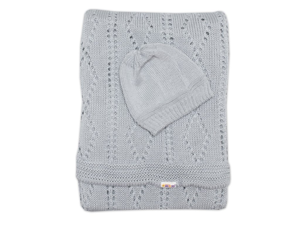 BABY NELLYS Háčkovaná sada dečka s čepičkou - šedá