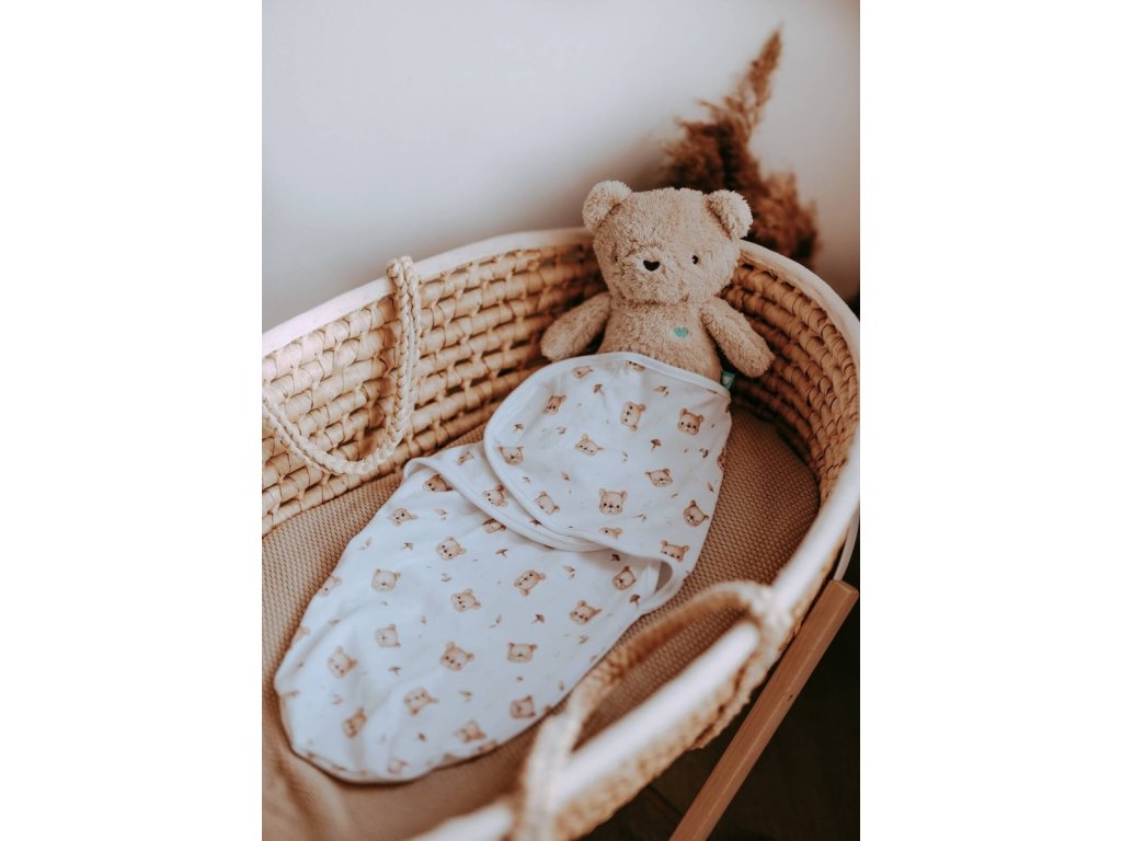 Bavlněný zavinovací vak, zavinovačka Premium Bear, bílá/hnědá