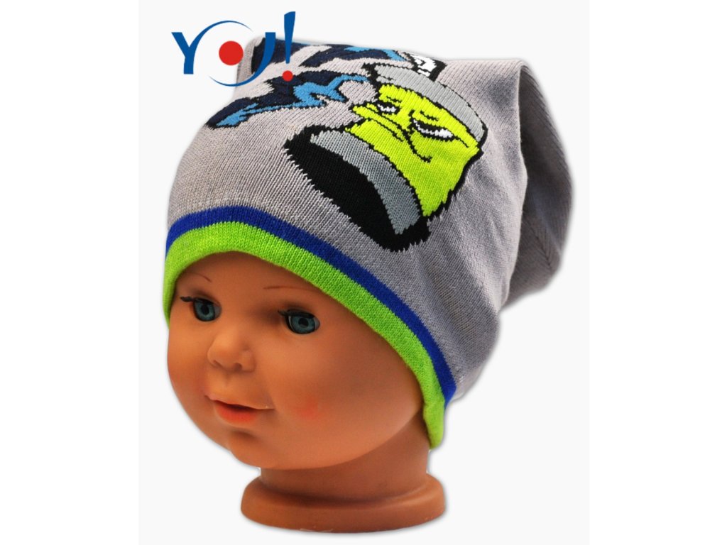 Čepička YO ! Grafitti - tm.šedá/zelený lem
