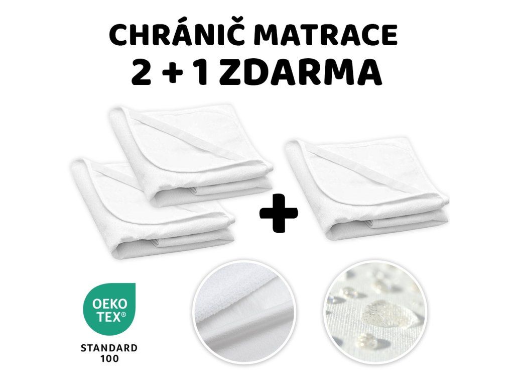 Chránič matrace do postýlky BASIC 2+1, 120x60cm, nepromokavý - bílý. Zajistěte maximální ochranu a pohodlí pro vaše dítě s naším nepromokavým chráničem matrace o rozměrech 120x60 cm. Tento praktický a hygienický doplněk je navržen tak, aby chránil matraci před tekutinami, skvrnami a alergeny, což přispívá k delší životnosti matrace a zdravějšímu spánku pro vaše dítě. Hlavní vlastnosti: - nepromokavý materiál: Chránič je vyroben z vysoce kvalitního nepromokavého materiálu, který účinně zabraňuje průniku tekutin a chrání matraci před znečištěním, - prodyšný a pohodlný: I přes svou nepromokavost je materiál prodyšný, což zajišťuje, že se vaše dítě nebude během spánku přehřívat, - uchycení na gumičky: Praktické uchycení na gumičky v rozích chrániče umožňuje snadné a rychlé nasazení na matraci. Gumičky zajišťují, že chránič pevně drží na svém místě a neklouže, - hypoalergenní: Vhodné pro děti s citlivou pokožkou a alergiemi. Chránič je navržen tak, aby minimalizoval riziko alergických reakcí, - snadná údržba: Chránič matrace lze snadno prát v pračce, což usnadňuje jeho údržbu a zajišťuje dlouhou životnost. Specifikace: Rozměry: 120x60 cm. Materiál: Nepromokavý a prodyšný, měkčená folie. Barva: Bílá. Uchycení: Gumičky v rozích. Balení obsahuje 2 + 1 chrániče na matraci zdarma. Chraňte matraci svého dítěte a zajistěte mu pohodlný a zdravý spánek s naším nepromokavým chráničem matrace. Ideální volba pro každou dětskou postýlku. Objednejte ještě dnes a zajistěte svému dítěti čisté a suché prostředí na spaní!Doplňkové parametry