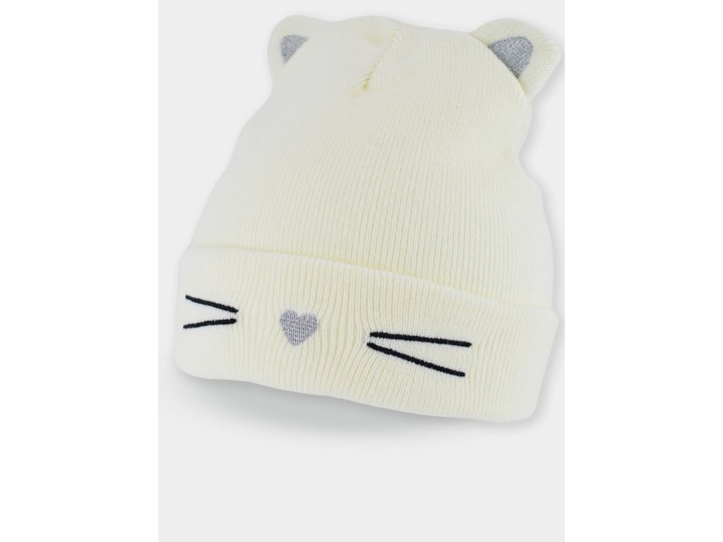 Dětská zimní čepice Kočička - ecru, vel. 46 - 50 cm