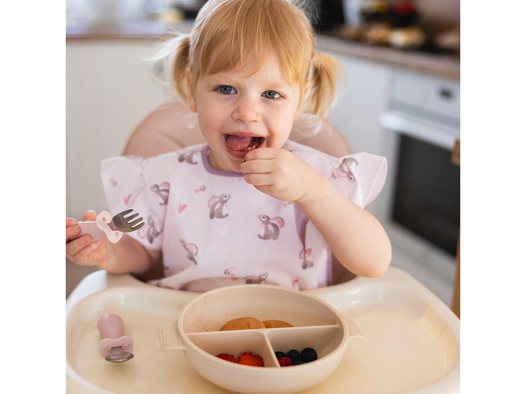 Sada bezpečných příborů pro vaše dítě, ideální pro učení se samostatnému jídlu lžící a vidličkou. Příbory jsou vyrobeny z vysoce kvalitní nerezové oceli a rukojeti jsou z protiskluzového silikonu. Dětské příbory Babyono mají speciální zarážku, která snižuje riziko udušení. Vaše dítě si příbory nezasune příliš hluboko do úst. ERGONOMICKÝ TVAR: Široké, zaoblené rukojeti s výstupky perfektně padnou do malých ručiček. Lehká konstrukce umožňuje bezpečný úchop. Jedná se o perfektní příbor pro učení se samostatnému jídlu a procvičování úchopu. Lžíce a vidlička jsou vyrobeny z odolné a korozivzdorné nerezové oceli. Rukojeti – vyrobené z potravinářského silikonu bez BPA, nevyklouznou vašemu dítěti z rukou. Vydrží dlouho. Zjednodušený design snižuje riziko podráždění. Vaše dítě bude moci bez obav dosáhnout na dětské příbory. Sada obsahuje: lžíci a vidličku se zarážkou. Materiál: nerezová ocel, silikon bez BPA v potravinářské kvalitě. Věk dítěte: 12 měsíců+. Čištění: vhodné do myčky nádobí.Doplňkové parametry