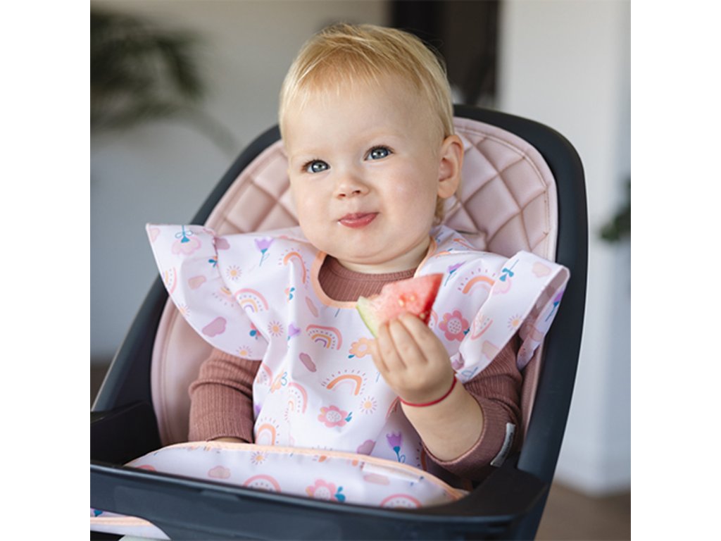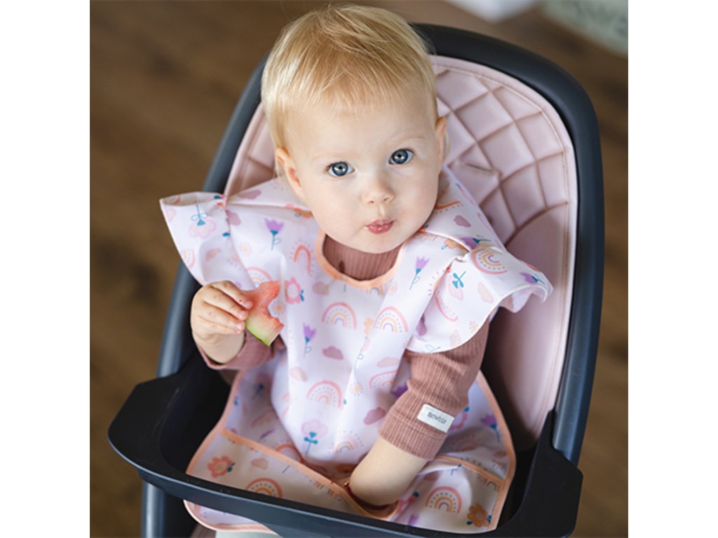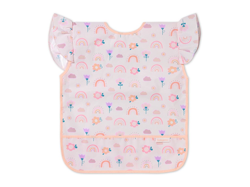 Dětský bryndák, zástěrka s kapsičkou Duha, pudrová