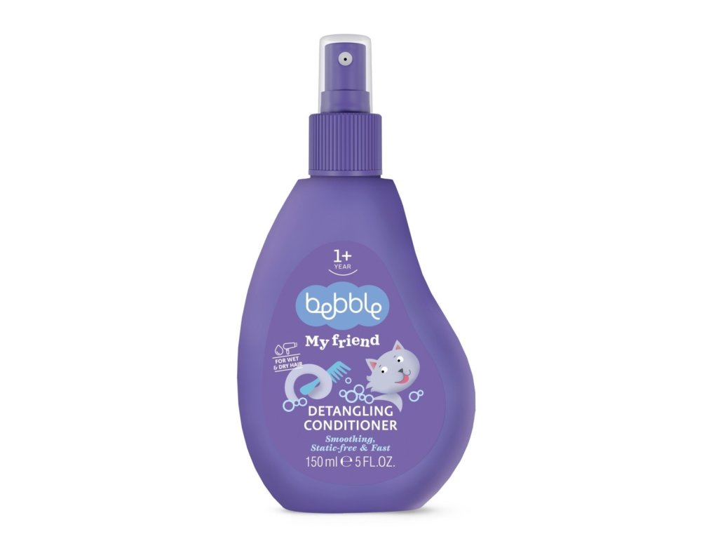 Dětský kondicionér na rozčesávání vlasů, 150 ml. Přípravek se může použít na suché i mokré vlasy. Speciální receptura tohoto šetrného kondicionéru obsahuje glycerin, který je znám tím, že zadržuje vlhkost ve svrchní vrstvě pokožky. Glycerin je vedlejším produktem při výrobě mýdla, je zcela neškodný pro tělo a má uklidňující účinek na pokožku. Stimuluje regeneraci pokožky a zanechává ji svěží, jemnou a hladkou. Obsahuje také D-panthenol, známý také jako provitamin B5, dodává pokožce jemný a hladký vzhled. Proniká do vnější vrstvy pokožky a udržuje přirozenou rovnováhu vlhkosti pokožky. Použití: Používejte na mokré nebo suché vlasy, nejvýše jednou denně. Nastříkejte na vlasy (3–4 stříknutí pro středně dlouhé vlasy) a po 15 vteřinách je rozčešte. Složení: Voda, amodimetikon, glycerin, peg-7 glycerylkokoát, cetrimoniumchlorid, bis – (isostearoyl/oleoyl isopropyl) dimonium metosulfát, propylenglykol, pantenol, parfém, cetrimoniumbromid, kyselina citronová, trideceth-12, benzoát sodný.Doplňkové parametry