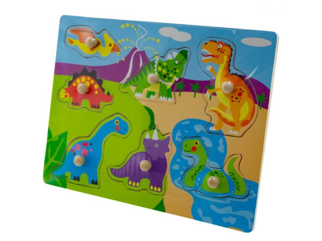 Dřevěné zábavné puzzle vkládací 30x22,5cm - Dinosauři