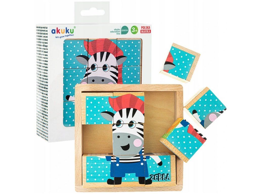Dítě se učí tvary, barvy a různá zvířátka. Dřevěný box usnadňuje stohování kostek, přenášení a skladování. Každá kostka má 6 stran a můžete vytvořit 6 různých obrázků. Jsou vyrobeny z bezpečného a ekologického dřeva. Inkousty používané pro tisk splňují schválení a jsou zcela bezpečné pro nejmenší. Skládá se z 9 kostiček + box. Rozměry: Kostka: 3,5 x 3,5 x 3,5 cm. Box: 12,5 x 12,5 cm. Materiál: dřevo.Doplňkové parametry
