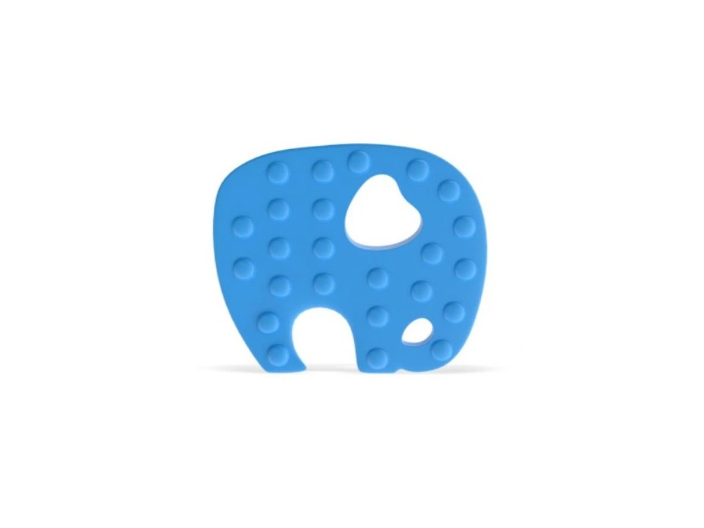 Silikonové kousátko. Náročné období prořezávání zoubků těm nejmenším zpříjemní modrý slon z bezpečného silikonu. Má speciální výstupky, které jemně masírují bolavé dásně. Velikost kousátka je přizpůsobena malým ručkám miminka, což usnadňuje používání hračky. Věk: 3m +. 1. jakost.Doplňkové parametry