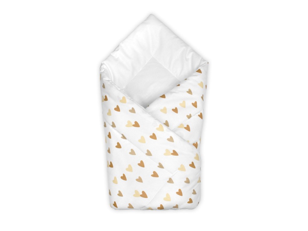 Kojenecká zavinovačka klasik Srdíčka - bílá, béžová