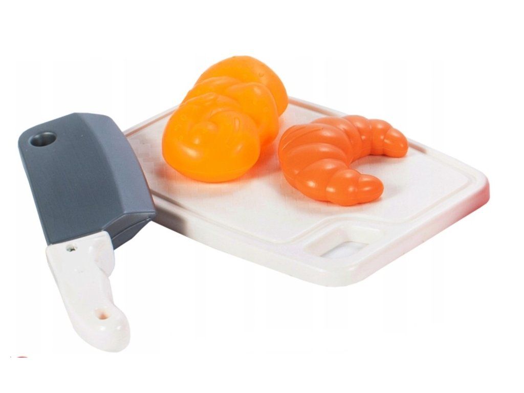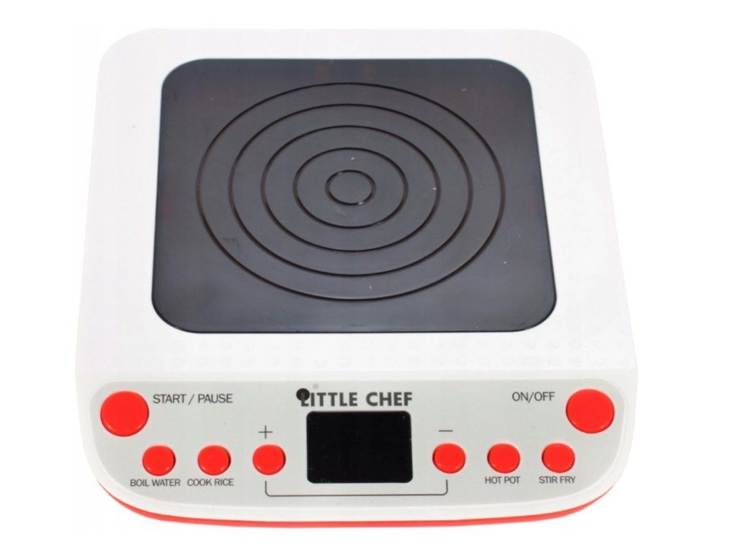 Kuchyňská sada. Sada na vaření s indukčním sporákem poskytne vašemu dítěti vlastní kuchyňský koutek. Malý kuchař bude mít možnost vaření a smažení na jedné indukční varné desce, která má 4 různé zvuky vaření. Produkt rozvíjí představivost a manuální dovednosti a přináší mnoho radosti s mnoha hodinami zábavy. Sada obsahuje: Indukční sporák na baterie, čajník, naběračku, sekáček, nůž na pizzu, obracečku, prkénko, hrneček, pečivo, ovoce. Po zapnutí tlačítka umístěného ve spodní části trouby se spustí zobrazení topné desky, díky čemuž bude naše batole moci ovládat nastavení teploty pomocí tlačítek na bocích displeje. Napájení 3 x AA - není součástí dodávky.Doplňkové parametry