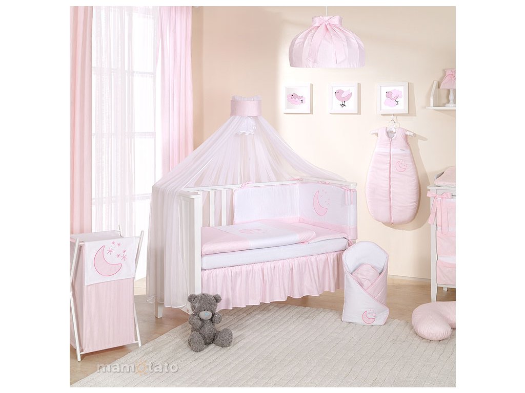 Moskytiéra na postýlku - bílá, růžová šerpa
