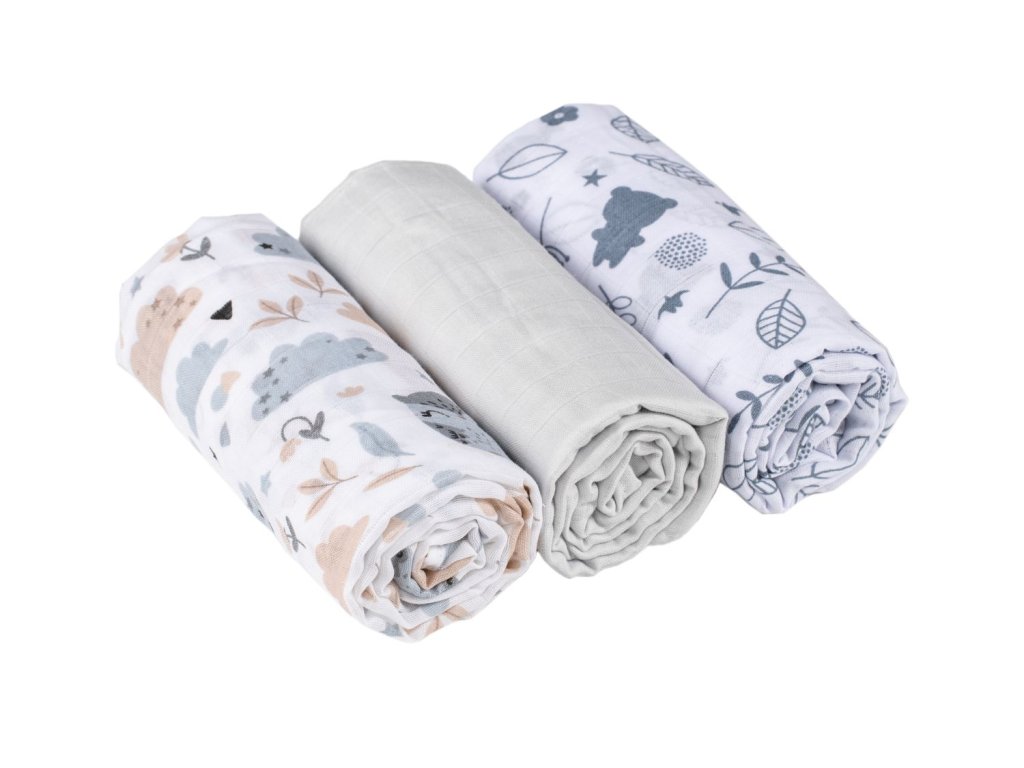 Mušelínové pleny 3ks Lux - Bunny, 70 x 80 cm, šedá, bílá