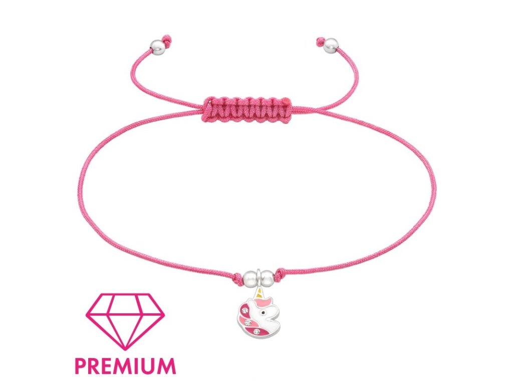 Náramek pro děti se stříbrnou ozdobou Premium Jednorožeč, růžový