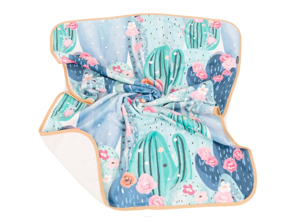 Oboustranná fleecová deka/dečka Kaktusy, 80x100cm, ecru/zelená
