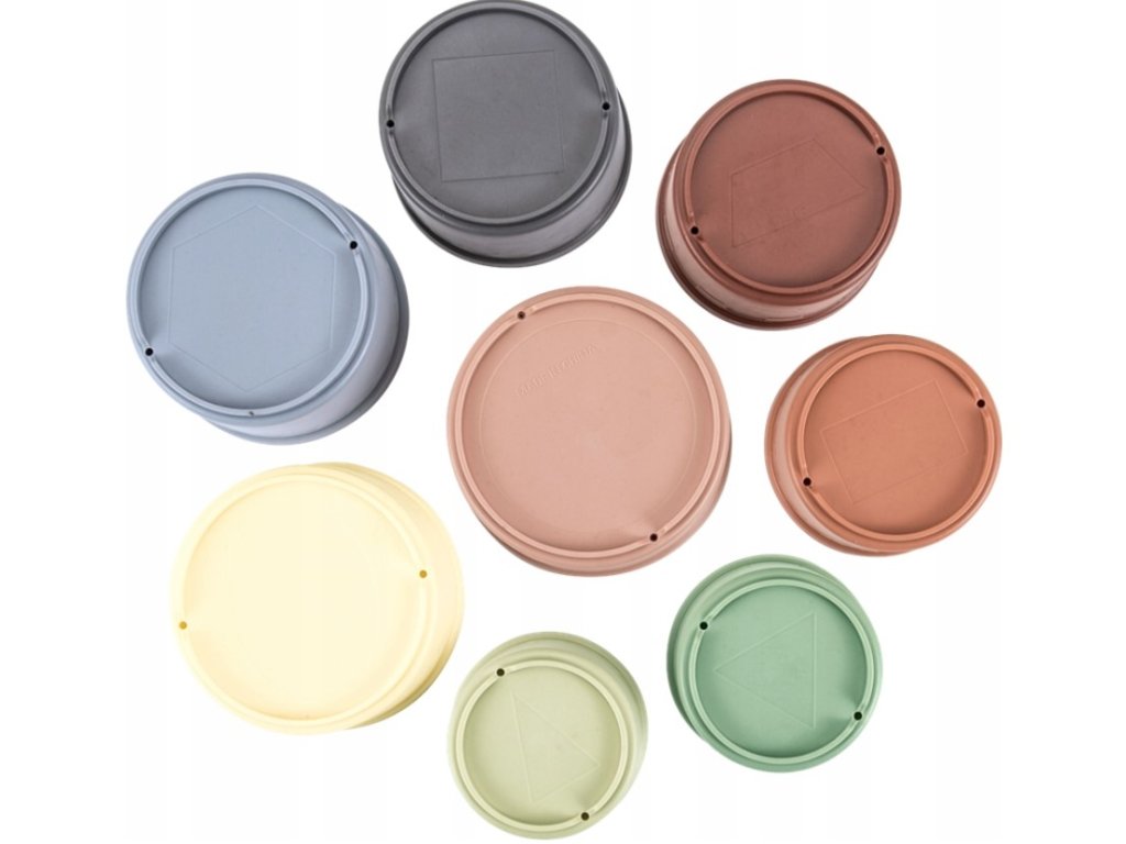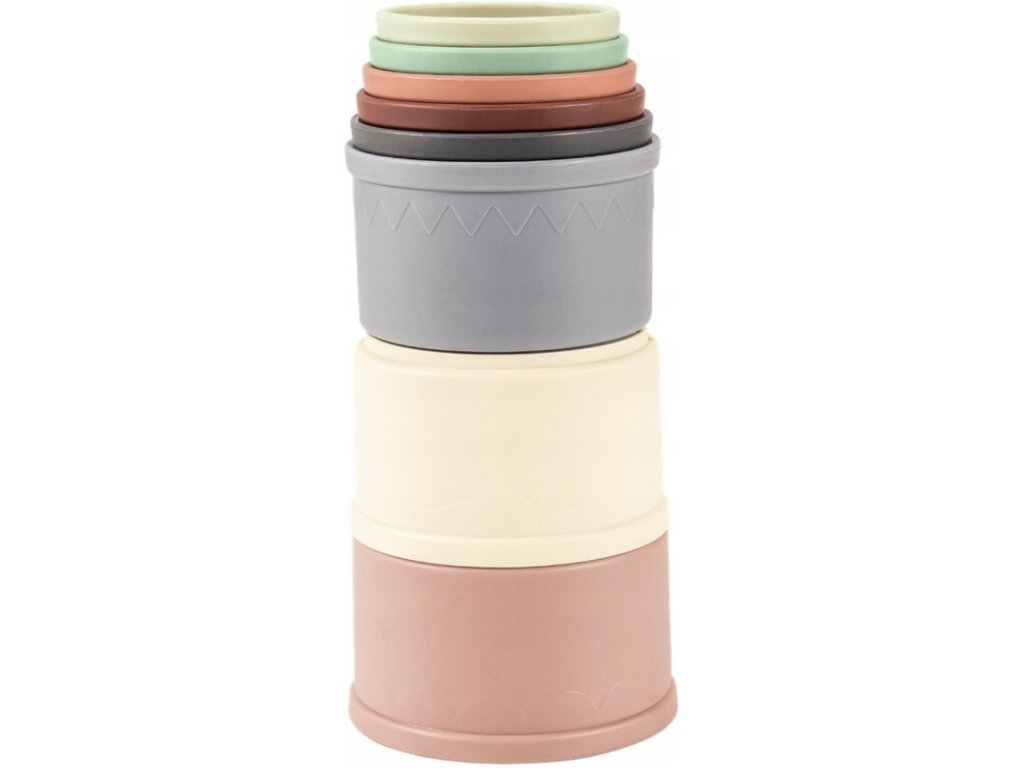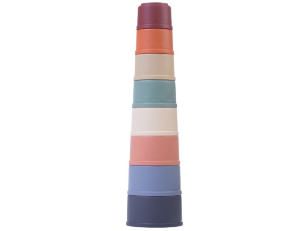 Plastové hrníčky do vody. Tyto multifunkční kelímky na stavbu věží stimulují jemnou motoriku a zabaví vaše dítě uvnitř i venku. Malé pastelové hrníčky na hraní lze skládat na sebe, překlápět se, udělají spoustu radosti každému dítěti. Stavba věže je skvělá zábava. Děti během ní zkoumají, jak do sebe tvary a velikosti zapadají, a využívají svou fantazii. Malé otvory na dně košíčků z nich dělají ideální pro hraní si s vodou ve vaně nebo zahradním bazénu při koupání nebo na pískovišti. Sada se skládá z 8 různých pastelových šálků.Doplňkové parametry
