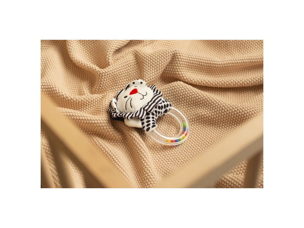 Senzorické chrastítko black&white pro miminko. Minimalismus, který okouzlí – Senzorické chrastítko v černo-bílé kombinaci. Senzorické chrastítko v kontrastních odstínech černé a bílé bylo vytvořeno s ohledem na stimulaci zraku a rozvoj smyslového vnímání vašeho miminka. Díky ergonomickému designu a pohodlnému uchopení je ideální pro malé dětské ručičky, což umožňuje snadnédržení a manipulaci. Uvnitř chrastítka se nacházejí jemné korálky, které při každém pohybu vydávají příjemný zvuk, podporující rozvoj sluchu a koordinace pohybů. Kontrastní barvy podporující vývoj dítěte. Černobílé hračky jsou skvělým nástrojem pro podporu rozvoje miminek již od prvních dnů života. Jednoduché geometrické tvary a kontrastní barvy přitahují pozornost, stimulují zrak a zároveň napomáhají rozvoji motorických schopností. Proč si vybrat senzorické chrastítko? - Podporuje rozvoj smyslového vnímání, koordinace a motoriky. - Kontrastní černo-bílá barva pomáhá stimulovat zrak miminka. - Ergonomický tvar zajišťuje snadné uchopení malými ručičkami. - Jemné zvuky chrastítka podporují sluchové vnímání. Toto senzorické chrastítko je ideální volbou pro každodenní hru, která vaše dítě nejen zabaví, ale zároveň přispěje k jeho zdravému vývoji. Objevte více smyslových hraček na našem e-shopu a vyberte to nejlepší pro vaše miminko. Rozměr cca 16x11cm. Upozornění: Nenechávejte dítě samo bez dozoru. Obal není hračka, odstraňte ho z dosahu dítěte.Doplňkové parametry
