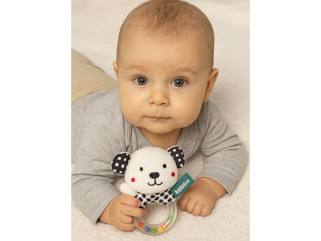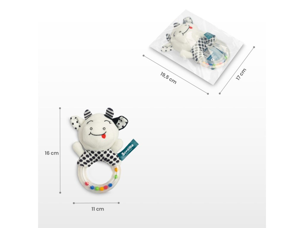 Senzorické chrastítko black&white pro miminko. Minimalismus, který okouzlí – Senzorické chrastítko v černo-bílé kombinaci. Senzorické chrastítko v kontrastních odstínech černé a bílé bylo vytvořeno s ohledem na stimulaci zraku a rozvoj smyslového vnímání vašeho miminka. Díky ergonomickému designu a pohodlnému uchopení je ideální pro malé dětské ručičky, což umožňuje snadnédržení a manipulaci. Uvnitř chrastítka se nacházejí jemné korálky, které při každém pohybu vydávají příjemný zvuk, podporující rozvoj sluchu a koordinace pohybů. Kontrastní barvy podporující vývoj dítěte. Černobílé hračky jsou skvělým nástrojem pro podporu rozvoje miminek již od prvních dnů života. Jednoduché geometrické tvary a kontrastní barvy přitahují pozornost, stimulují zrak a zároveň napomáhají rozvoji motorických schopností. Proč si vybrat senzorické chrastítko? - Podporuje rozvoj smyslového vnímání, koordinace a motoriky. - Kontrastní černo-bílá barva pomáhá stimulovat zrak miminka. - Ergonomický tvar zajišťuje snadné uchopení malými ručičkami. - Jemné zvuky chrastítka podporují sluchové vnímání. Toto senzorické chrastítko je ideální volbou pro každodenní hru, která vaše dítě nejen zabaví, ale zároveň přispěje k jeho zdravému vývoji. Objevte více smyslových hraček na našem e-shopu a vyberte to nejlepší pro vaše miminko. Rozměr cca 16x11cm. Upozornění: Nenechávejte dítě samo bez dozoru. Obal není hračka, odstraňte ho z dosahu dítěte.Doplňkové parametry