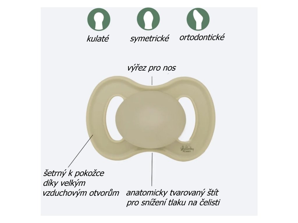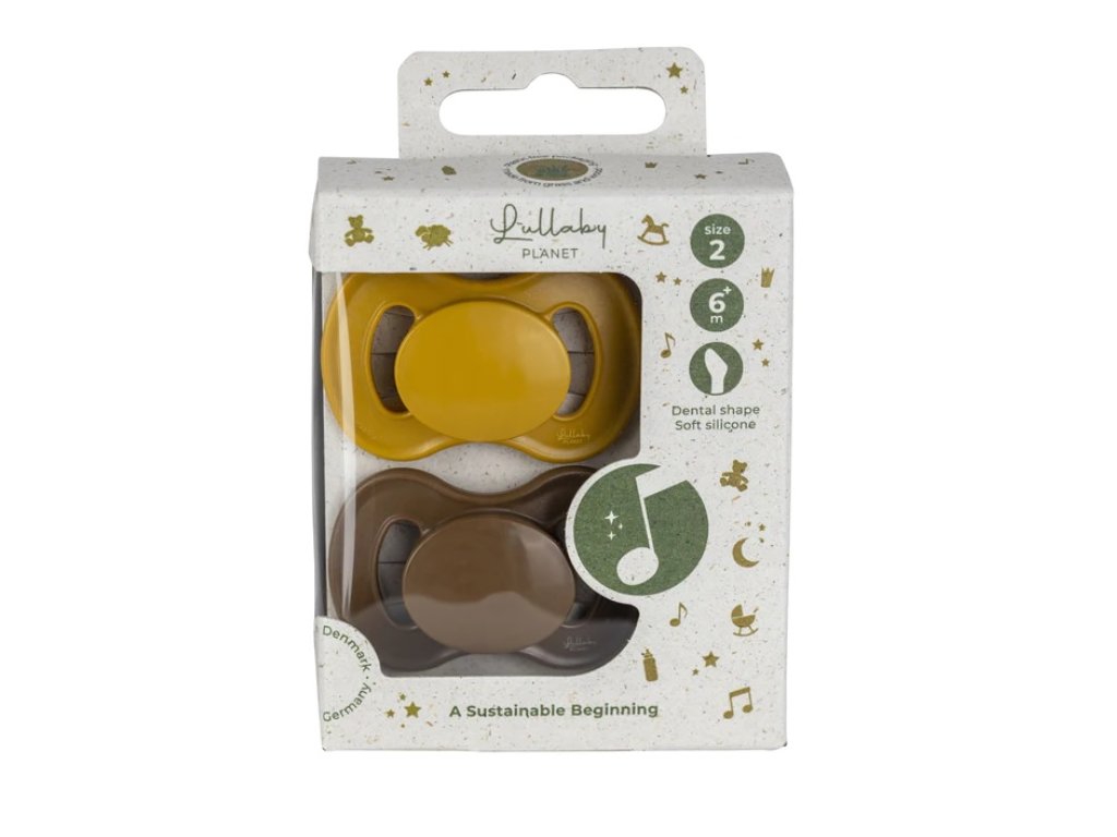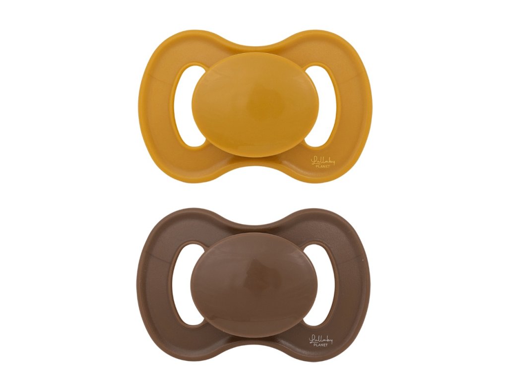 Šidítko, dudlík ortodontický silikon, 2ks, Lullaby Planet, 6m+, hnědá/hořčice