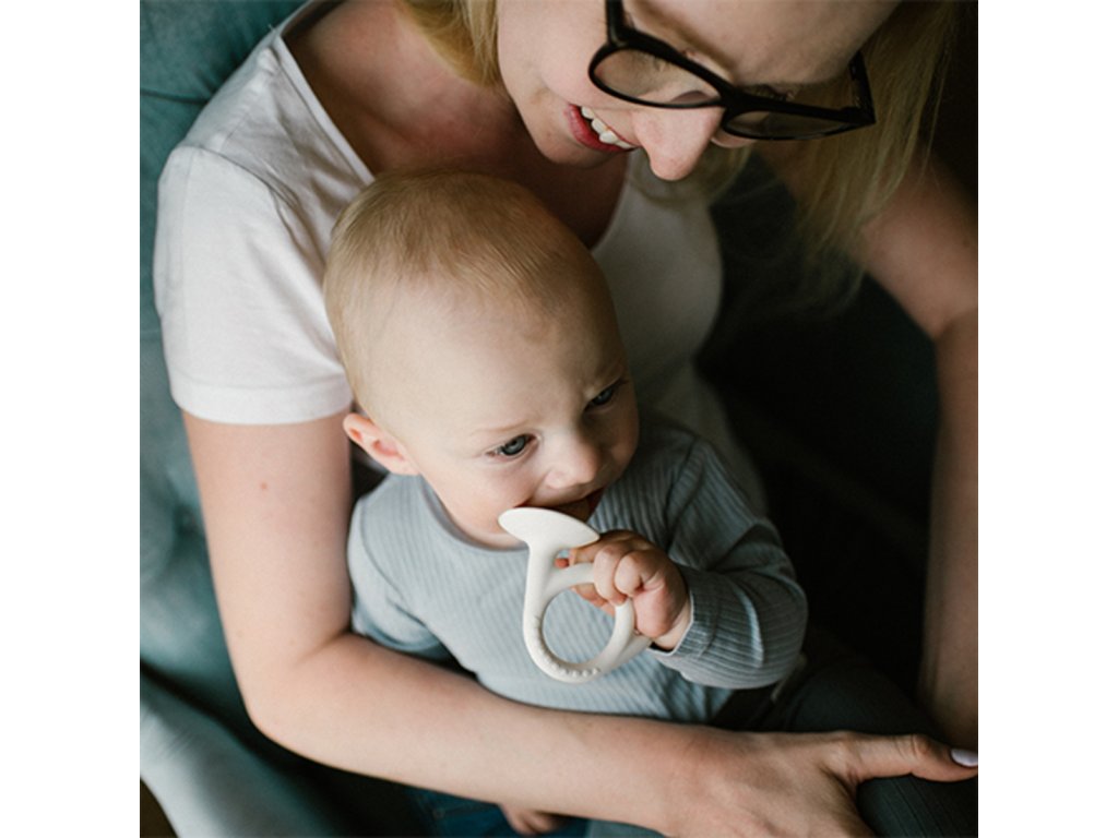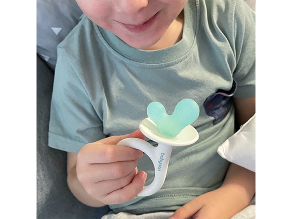 Silikonové kousátko. Ergonomický tvar byl přizpůsoben malým ručkám dítěte. Výstupky na povrchu kousátka jemně masírují dásně a pomáhají tak vašemu miminku objevovat různé textury měkkého silikonového materiálu. Kousátko zklidňuje bolest a nepohodlí dásní doprovázející prořezávání zoubků, jemně masíruje podrážděná místa a přináší dítěti úlevu. Vhodné pro děti od 0m+. Před prvním použitím výrobek spařte vroucí vodou (nevařte!) a osušte. Aby byla čistá každý den, doporučujeme ji umýt v teplé vodě s dětským mýdlem. Po umytí důkladně opláchněte a osušte. Odstraňte z hračky všechny bezpečnostní prvky, které mohou být pro dítě nebezpečné. Hračka splňuje normu EN 71. Materiál: bezpečný silikon. Rozměry produktu: 7 × 10 cm.Doplňkové parametry