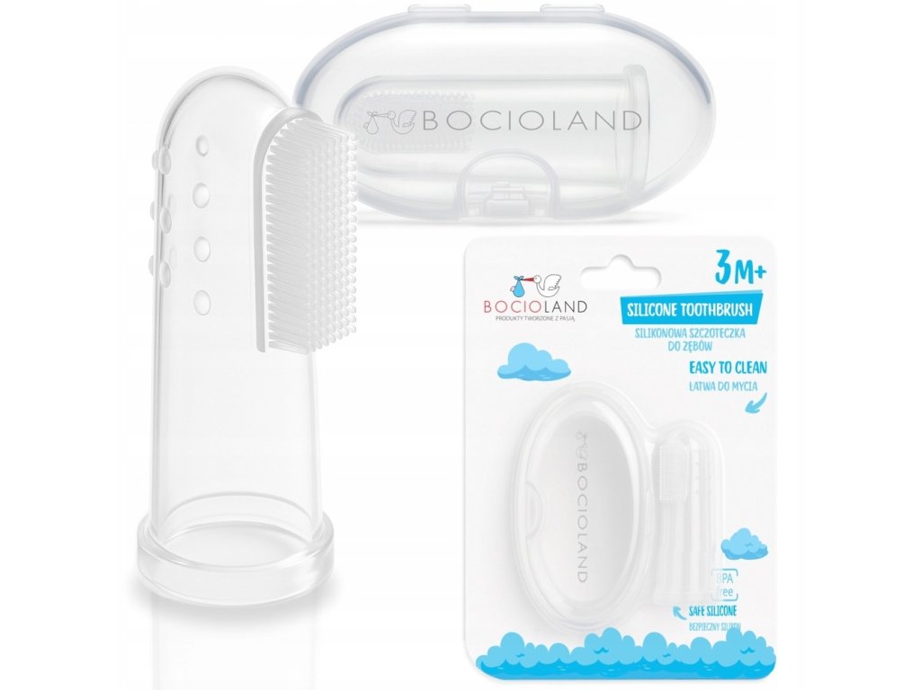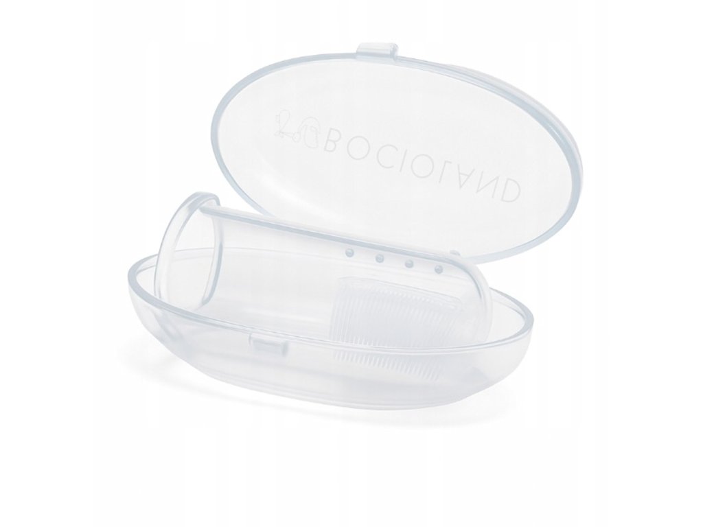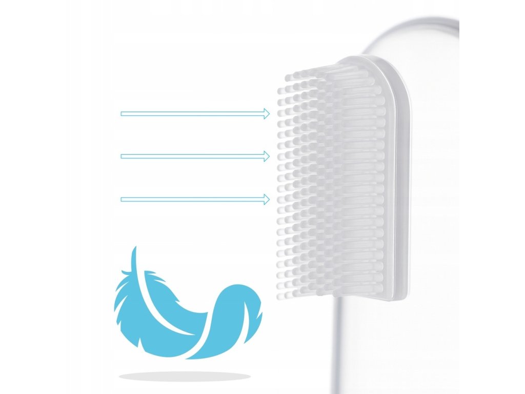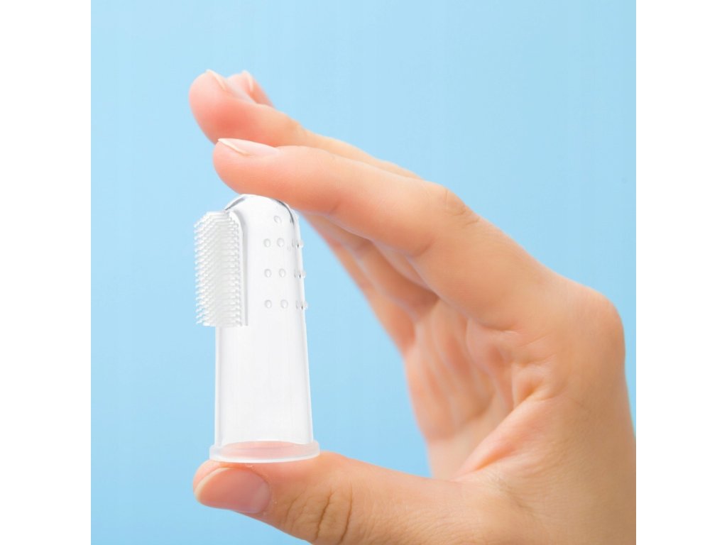 První zubní kartáček na prst – jemná péče o první zoubky a dásně. Tento velmi jemný silikonový kartáček je určen pro čištění prvních zoubků dítěte a jemnou masáž dásní. Je ideální i pro děti, které ještě nemají zuby. Konstrukce kartáčku umožňuje snadné čištění i těžko dostupných míst v ústech. Speciální silikonové výstupky důkladně a šetrně masírují dětské dásně, čímž podporují jejich prokrvení a ulevují při prořezávání zoubků. Výhody: Pomáhá dítěti osvojit si správné návyky zubní hygieny. Vyroben z bezpečného, měkkého a netoxického silikonu. Snadno se nasazuje na prst pro pohodlné a přesné čištění. Údržba: Udržujte kartáček v čistotě. Před každým použitím sterilizujte ve vařící vodě po dobu 5 minut. Po každém použití důkladně umyjte a opláchněte. Je ideálním pomocníkem pro jemnou a bezpečnou péči o ústa vašeho miminka již od prvních měsíců života.Doplňkové parametry