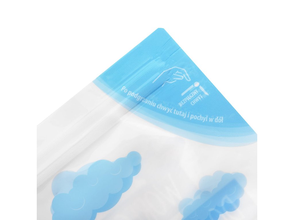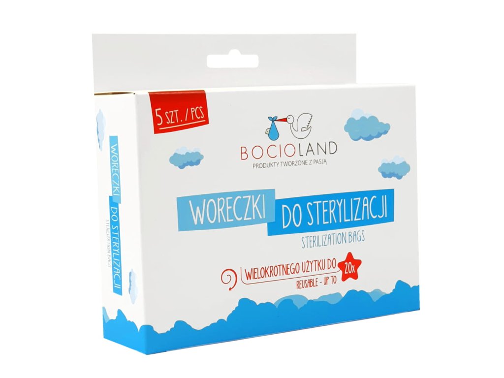 Sterilizační sáčky BOCIOLAND Jsou perfektním řešením pro moderní rodiče, kteří dbají na bezpečnost a hygienu svých dětí. Sáčky umožňují rychlou a snadnou sterilizaci příslušenství pro děti a kojení, jako jsou láhve, dudlíky a části odsávačky mateřského mléka, čímž se odstraní až 99,9 % nebezpečných bakterií a choroboplodných zárodků. Zapomeňte na časově náročné vaření – nyní stačí 1,5 minuty v mikrovlnné troubě, abyste svému dítěti poskytli sterilní doplňky! Rychlý provoz - celá sterilizace trvá pouze 1,5 minuty, což umožňuje ušetřit čas během dne plného povinností. Snadné použití a mobilita – tašky jsou malé a šikovné, díky čemuž je lze snadno vložit do tašky a používat, ať jste kdekoli, například na cestách. Vysoká účinnost - balení obsahuje 5 sáčků, přičemž každý z nich lze použít až 20x. To znamená celkem 100 sterilizačních procesů! Všestrannost – v sáčcích můžete sterilizovat různé druhy příslušenství: jsou ideální pro lahve, dudlíky, části odsávačky mléka a další drobnosti. Rozměry každého sáčku jsou 29 x 21 cm, což poskytuje dostatečný prostor pro pohodlnou sterilizaci mnoha různých doplňků zároveň. Použití: Před sterilizací rozložte výrobky (např. lahvičky, dudlíky, části odsávačky mléka) a důkladně je umyjte ve vodě se saponátem a poté důkladně opláchněte. Naplnění sáčku vodou: Do sáčku nalijte 60 ml vody. Pro odměření správného množství můžete použít odměrku na lahvičce. Umístění produktů do sáčku: Umístěte produkty do sáčku. Prázdná místa můžete vyplnit menšími prvky, jako jsou překryvy nebo části odsávačky. Uzavření sáčku: Sáček bezpečně uzavřete pomocí horního plastového uzávěru (provázku), aby obsah nevytekl. Umístění do mikrovlnné trouby: Připravený sáček vložte do mikrovlnné trouby. Nastavení mikrovlnné trouby: 1,5 minuty – pro výkon 1100W 3 minuty – pro výkon 800-1000W 5 minut – pro výkon 600-750W Po sterilizaci: Po dokončení mikrovlnné trouby počkejte asi 2 minuty, než sáček vychladne. Odstranění přebytečné vody: Opatrně vyjměte sáček z mikrovlnné trouby a poté vylijte zbývající vodu otvorem (levý horní roh), označeným červeně. Vyjmutí sterilizovaných produktů: Otevřete sáček a vyjměte sterilizované příslušenství, připravené k bezpečnému použití. Pozor! Místo, kde byste měli tašku uchopit, je vyznačeno na tašce (pravý horní roh). Pára a voda po sterilizaci mohou být velmi horké. Množství v sadě: 5 kusů. Rozměry: 29 x 21 cm. Materiál: Bez BPA, zcela bezpečný pro zdraví dětí. Barva: Bezbarvá.Doplňkové parametry