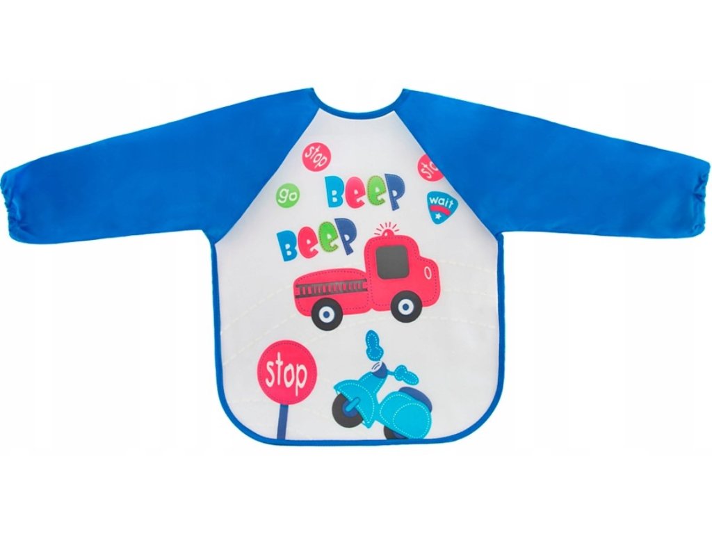 BocioLand Zástěrka, bryndák . Nepromokavý bryndáček s rukávy účinně chrání dětské oblečení před ušpiněním při jídle. Ideální na doma i na cesty. Má speciální kapsu, která zabraňuje pádu větších kusů potravin. Materiál: 65% polyester, 35% bavlna. Rozměr: 34 x 34 cm. Udržujte v čistotě.Doplňkové parametry