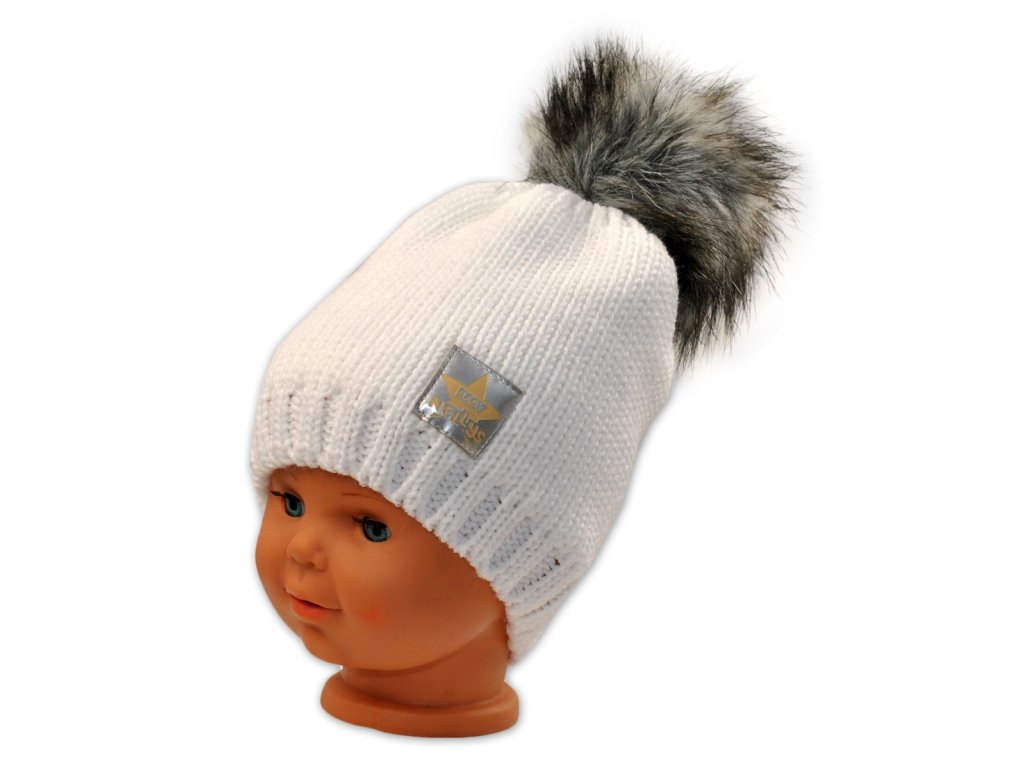 Zimní čepička s bambulkou - bílá, Baby Nellys