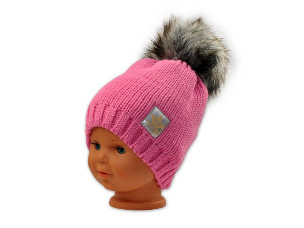 Zimní čepička s bambulkou - růžová